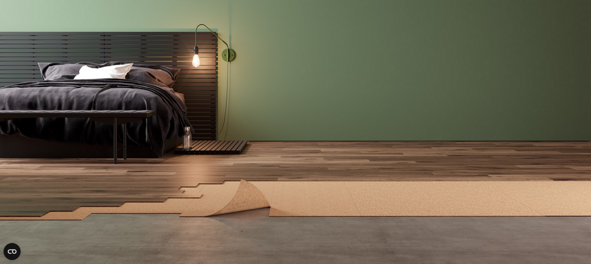 Die Rollkork-Unterlage reduziert effektiv Trittschall und verbessert die Raumakustik spürbar. Gleichzeitig sorgt sie für eine angenehme Wärmedämmung und erhöht den